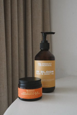 Embrace the power of nature with our Herbal Bundle, combining two of our most cherished products: the In Bloom Face & Body Oil and the Calendula & Chamomile Balm. This duo is thoughtfully formulated to hydrate, soothe, and restore your skin, making it ideal for those seeking natural, gentle skincare solutions.