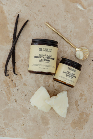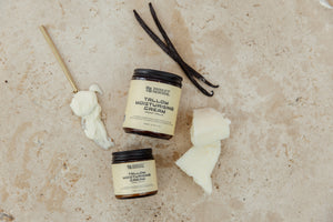 Indulge your skin with the luxurious, whipped texture of our Creamy Vanilla Tallow Cream. Crafted with certified organic ingredients, this rich yet light cream deeply hydrates and nourishes, leaving your skin soft, smooth, and enveloped in a subtle, comforting mild vanilla scent.